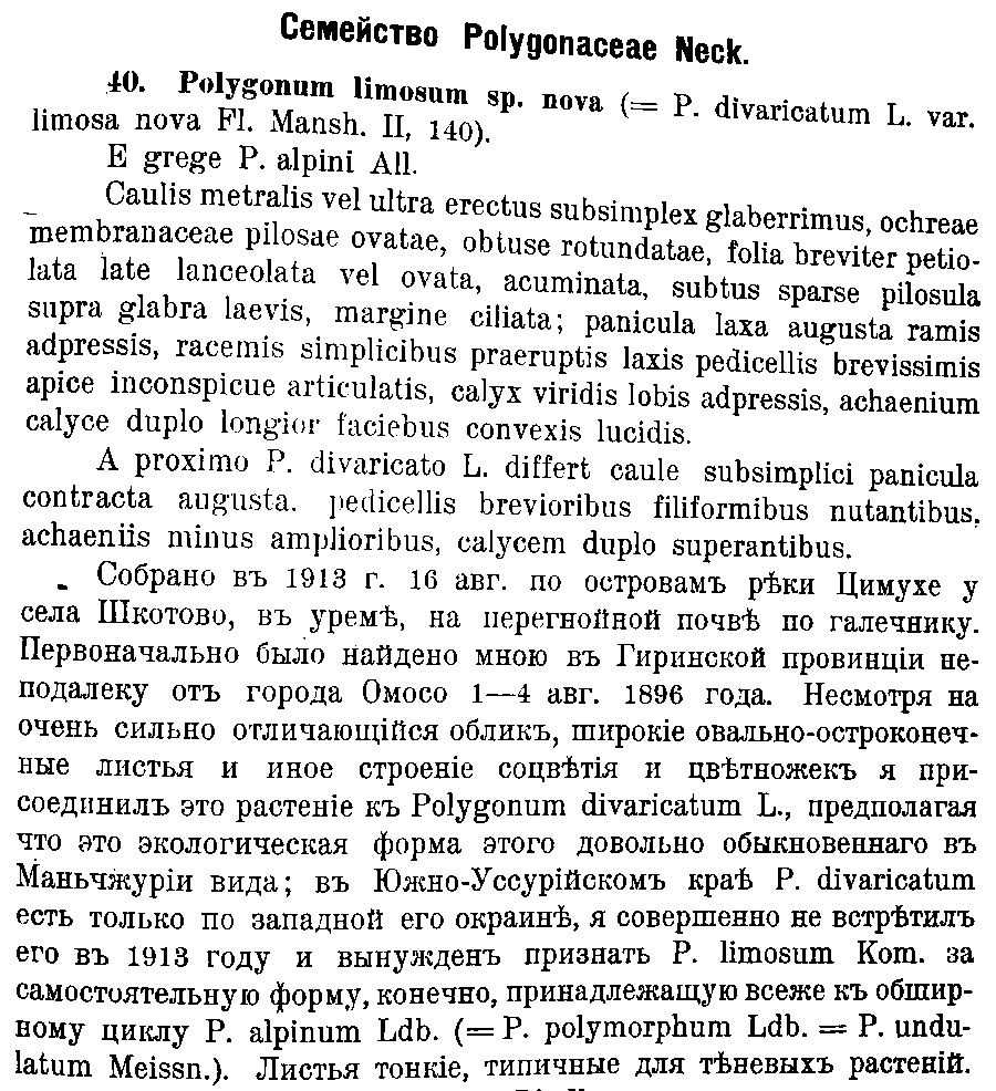 | Andriy Kovalchuk | Протолог Polygonum divaricatum var. limosum Kom. (Acta Horti Petropolitani 22(1): 140. 1903):