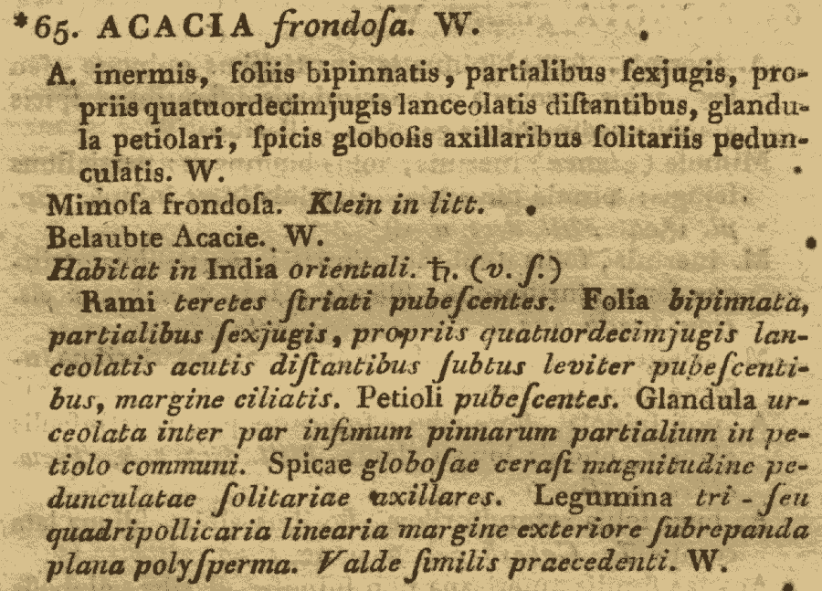 Протолог Acacia frondosa Willd. (Species Plantarum, ed. 4, 4(2): 1076. 1806 [Apr 1806]):