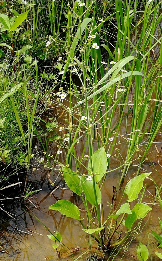 Растёт в стоя ей воде, рыхлое соцветие с маленькими белыми цветами.
