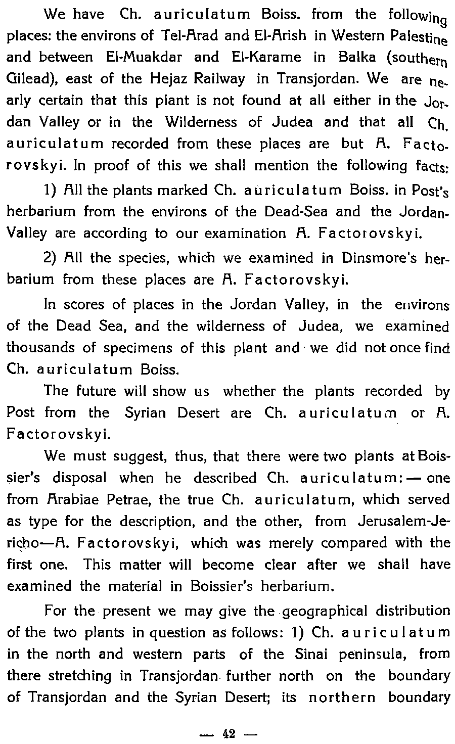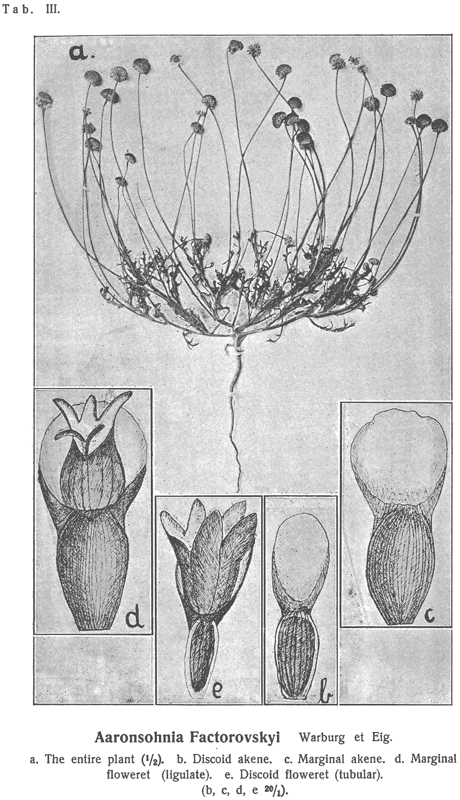 Протолог Aaronsohnia factorovskyi Warb. & Eig (Bulletin // Agricultural Experiment Station, Institute of Agriculture and Natural History, The Zionist Organisation 6: 40(-43). 1927 (The Second Contribution to the Flora of Palestine  :
