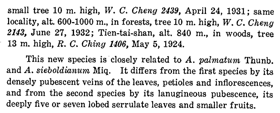 | Andriy Kovalchuk | Протолог Acer pubipalmatum W.P. Fang (Contributions from the Biological Laboratory of the Science Society of China: Botanical Series 8: 169(-170), fig. 8. 1932):