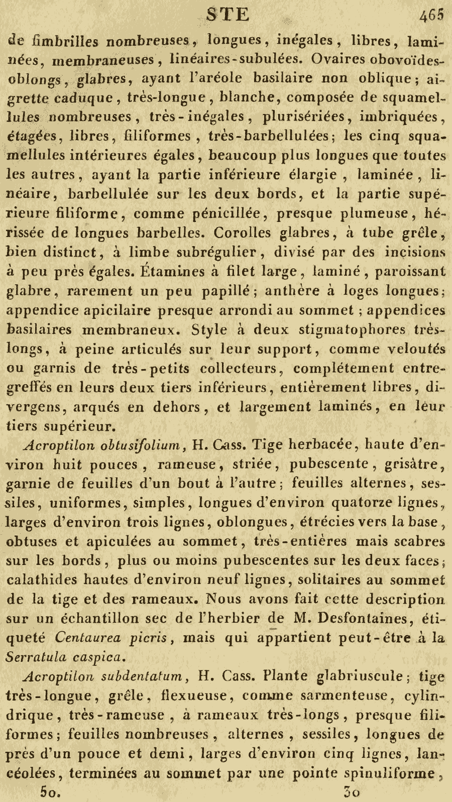 | Andriy Kovalchuk | Протолог рода Acroptilon Cass. (Dictionnaire des Sciences Naturelles 50: 464(-467). 1827 [Nov 1827]; лектотип: Acroptilon obtusifolium Cass. (= Acroptilon repens (L.) DC.  :