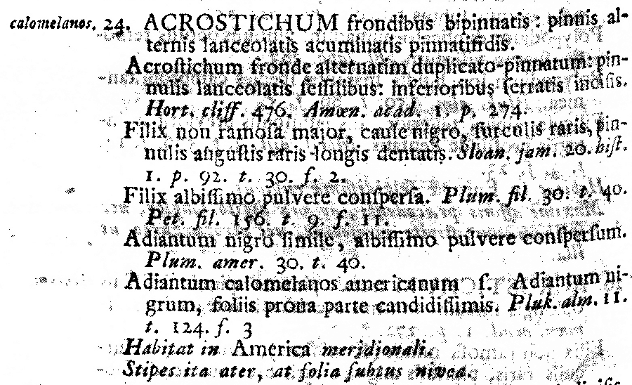 Протолог Acrostichum calomelanos L. (Species Plantarum 2: 1072. 1753 [1 May 1753]):