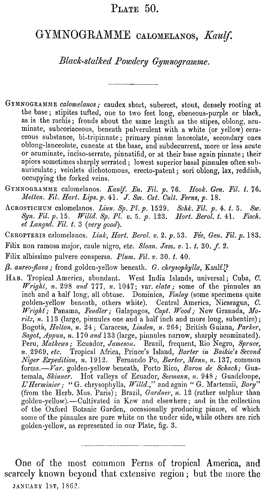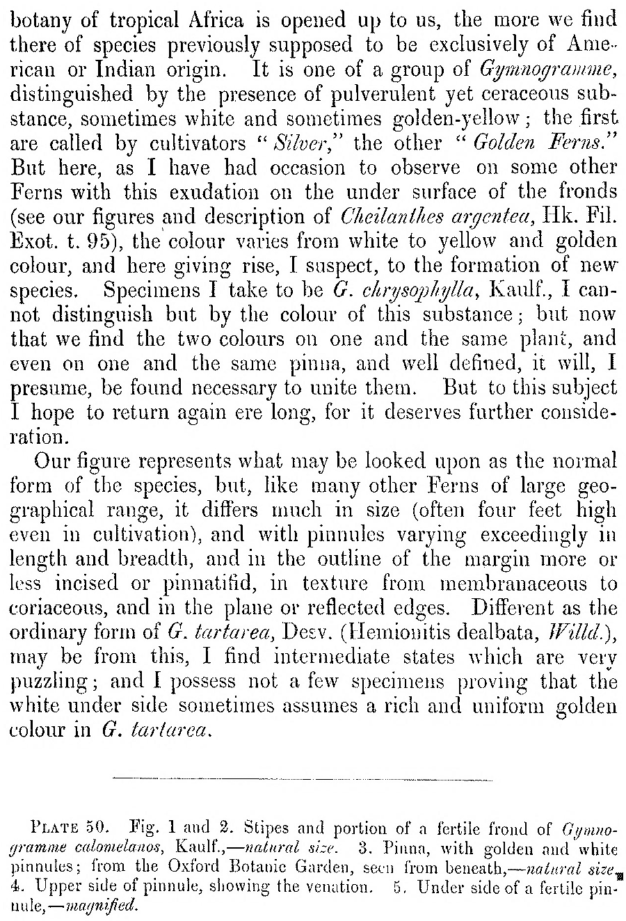 Протолог Gymnogramma calomelanos var. aureoflava Hook. (Garden Ferns: pl. 50. 1862):