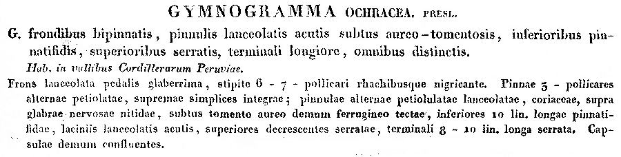 Протолог Gymnogramma ochracea C. Presl (Reliquiae Haenkeanae 1(1): 17. 1825):