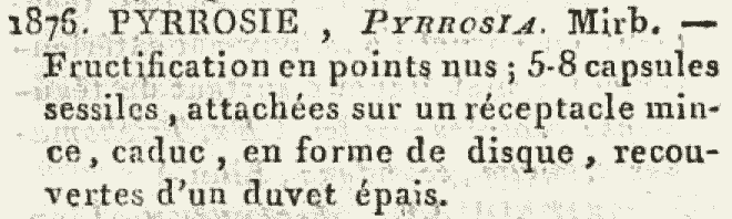 | Andriy Kovalchuk | Протолог рода Pyrrosia Mirb. (Histoire Naturelle des Végétaux, Classés par Familles [Lam. & Mirbel] 3: 471. 1802 (1803?); тип: Pyrrosia chinensis Mirb. (= Pyrrosia stigmosa (Sw.) Ching  :