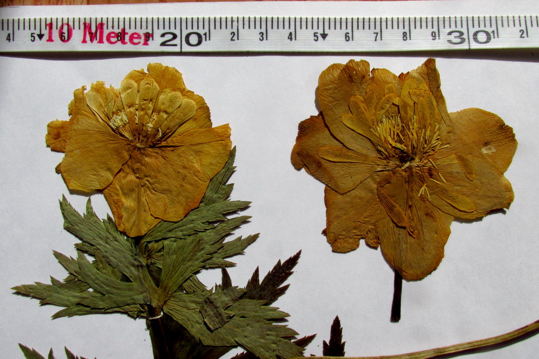 Это не может быть "неправильным толкованием". Автор вида В.В. Ревердатто (1943) процитировал 3 типовых образца: 2 из Эвенкии и 1 из окр. Минусинска (п. Городок); Лектотипом (Гуреева, 2012) является последний. Это практически на Енисее, в 20 км от города Абакана. Так что неверное толкование - Ваше Есть у меня подозрение, что это неправильное толкование вида, и что настоящий T. kytmanovii не спускается с гор, а между Прибайкальем и Енисеем тянутся гибридные формы, возможно даже разного происхождения... Но смогу ли это доказать пока не знаю. Это так, экстраполяция интуитивного восприятия на основе некоторого опыта. У Купальницы Кытманова довольно мелкие цветки 1,5-2,8 см согласно автору вида. Это низкогорный вид. |