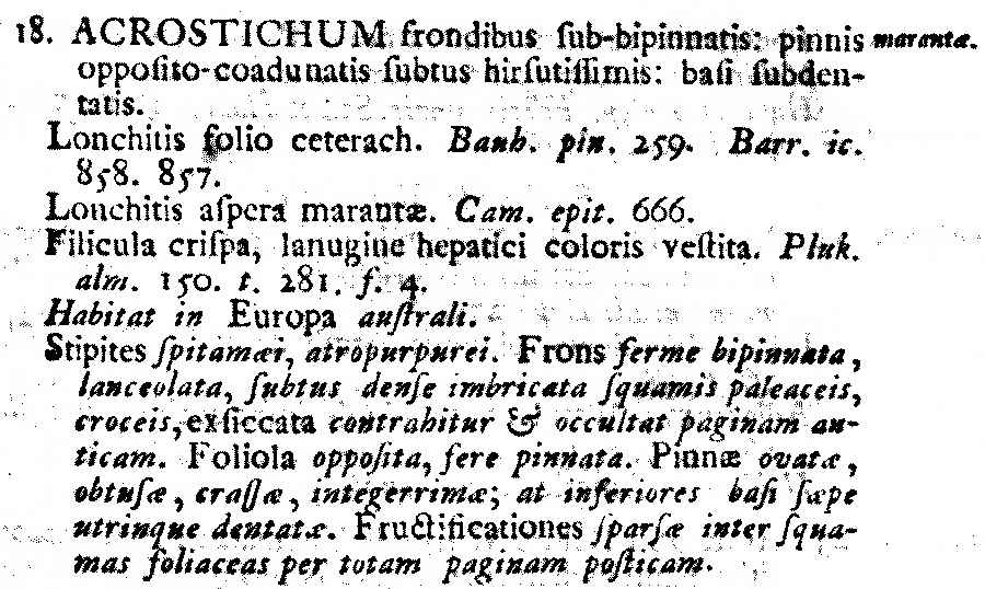 Протолог Acrostichum marantae L. (Species Plantarum 2: 1071. 1753 [1 May 1753]):