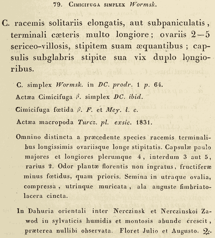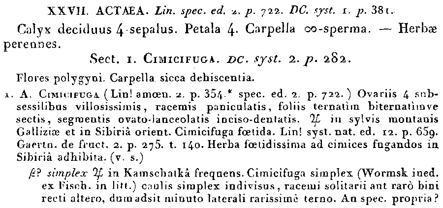 Протолог Actaea cimicifuga var. simplex DC. (Prodromus Systematis Naturalis Regni Vegetabilis 1: 64. 1824):
