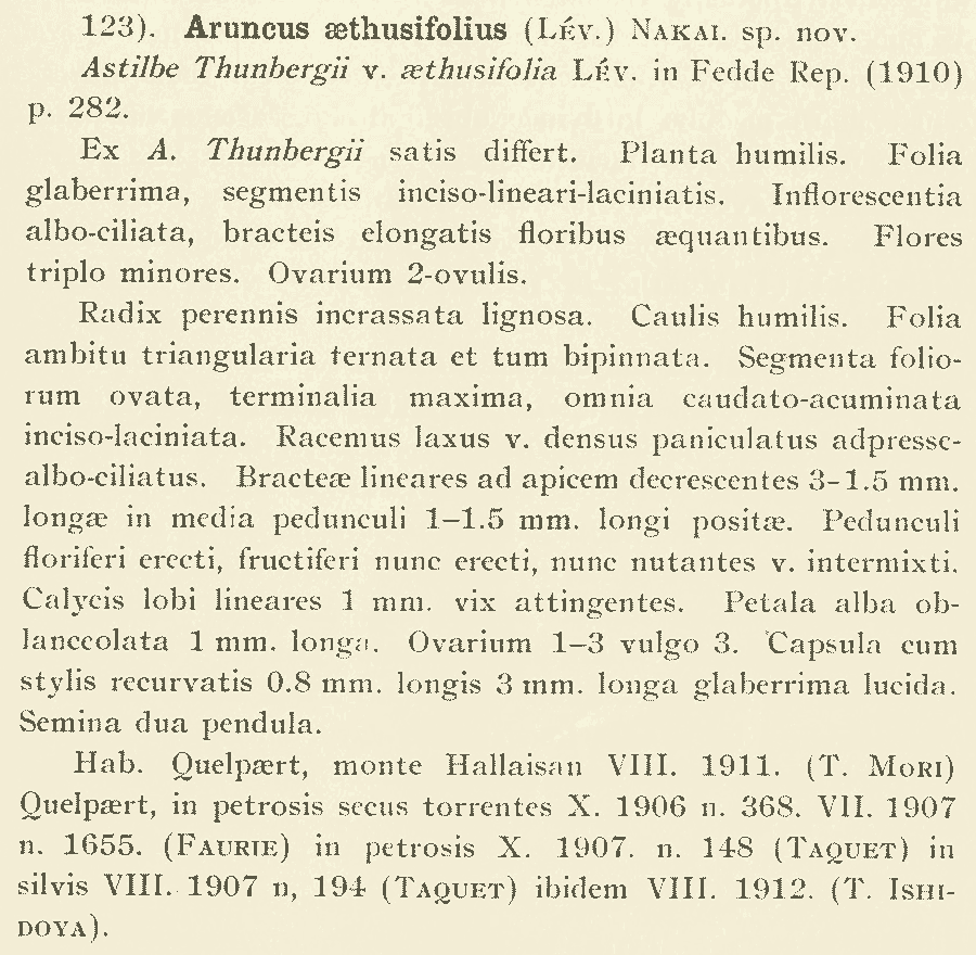| Andriy Kovalchuk | Обнародование комбинации Aruncus aethusifolius (H.Lév.) Nakai (Botanical Magazine (Tokyo) 26: 325. 1912):