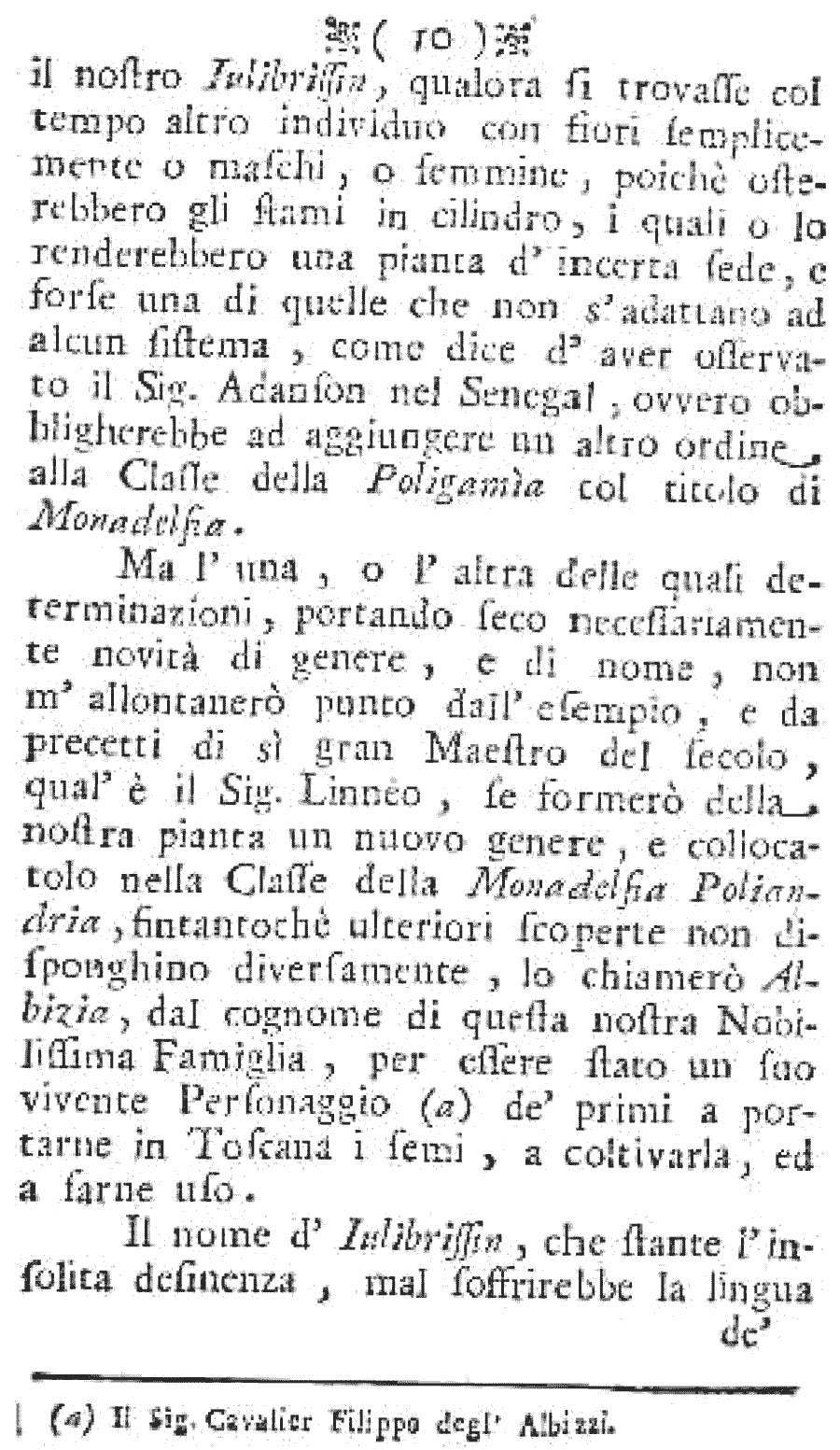 Род назван в честь Филиппо Альбицци (Filippo degli Albizzi), который привёз семена