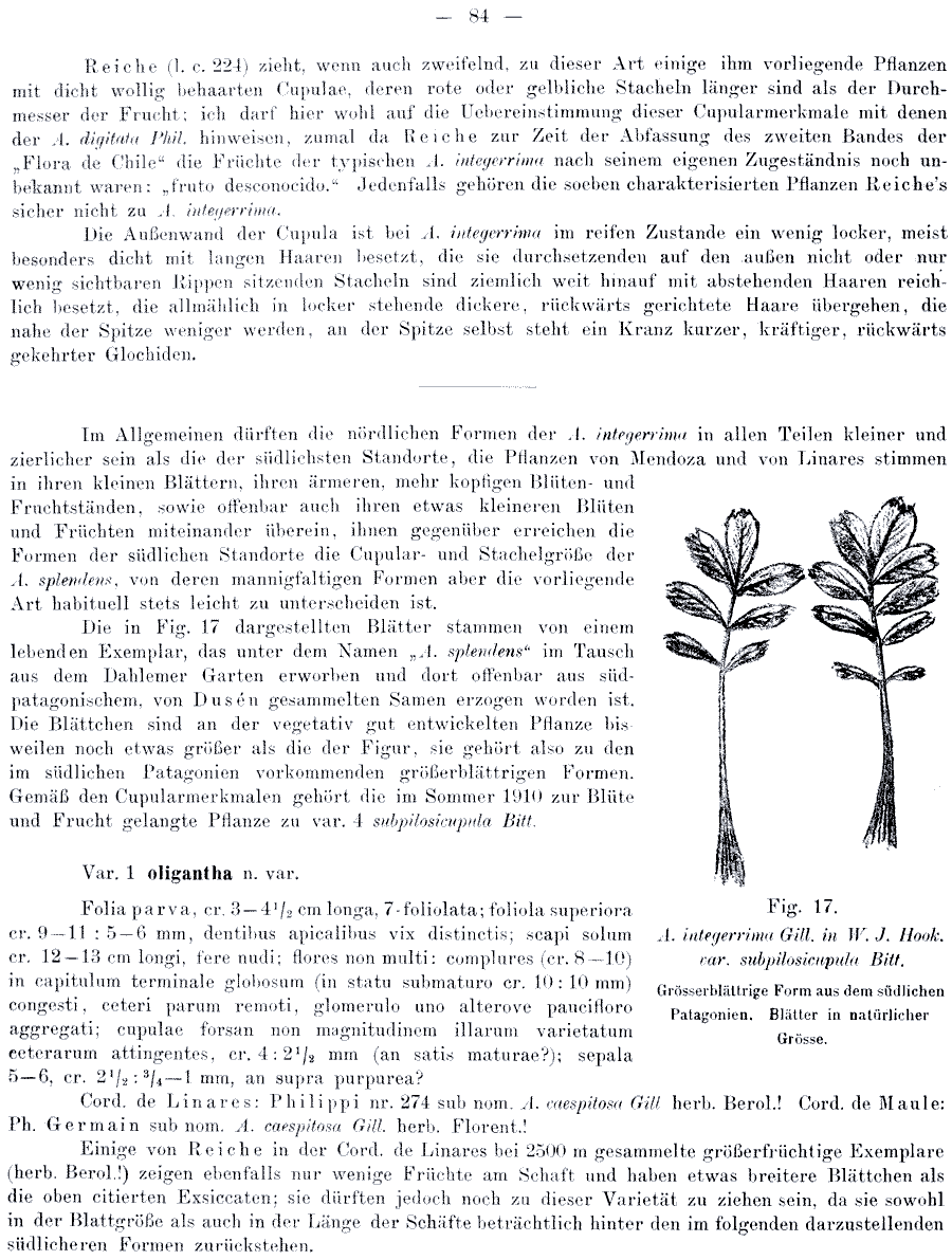 | Andriy Kovalchuk | Протолог Acaena integerrima var. evectifolia Bitter и Acaena integerrima var. subpilosicupula Bitter (Bibliotheca Botanica 17, Heft 74: 85. 1910):