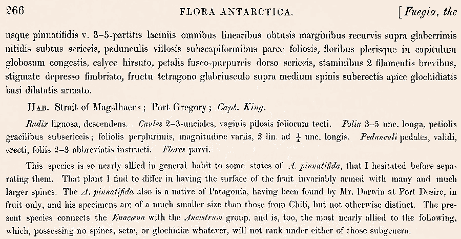 Протолог Acaena multifida Hook. f. (Botany of the Antarctic Voyage ...Volume 1. Flora Antarctica 1(2): 265-266. 1846 [ante 2 Feb 1846]):