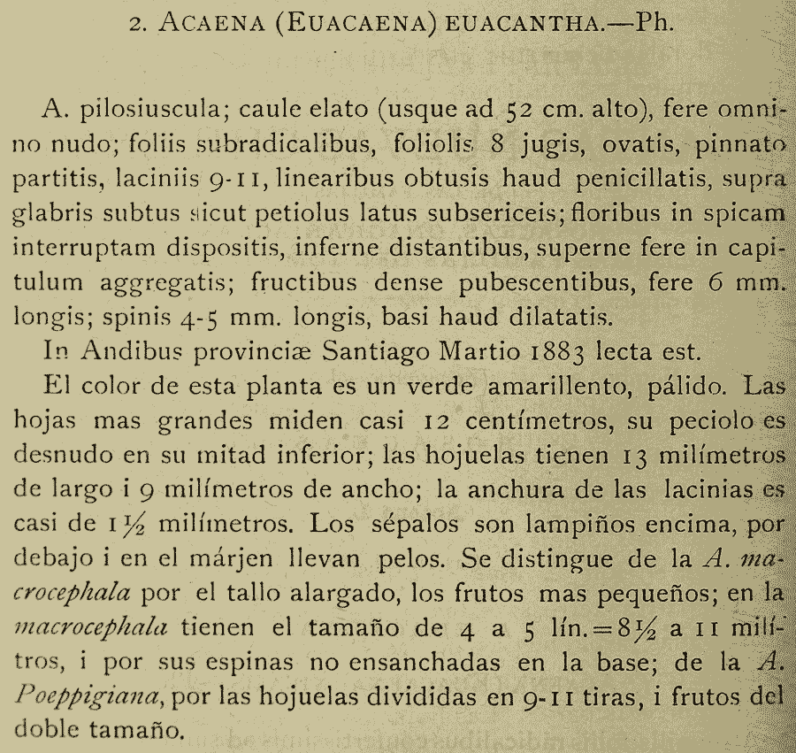 Протолог Acaena euacantha Phil. (Anales de la Universidad de Chile 84: 620. 1893):