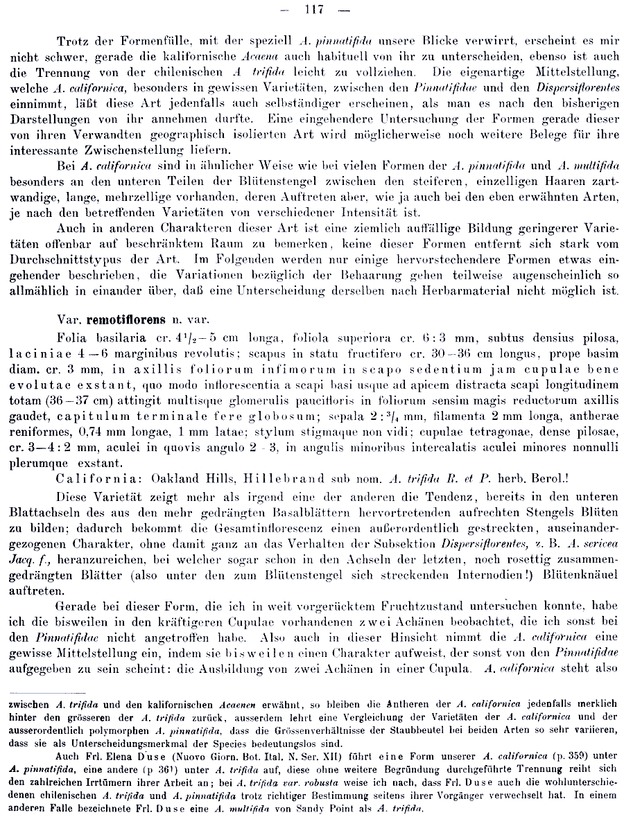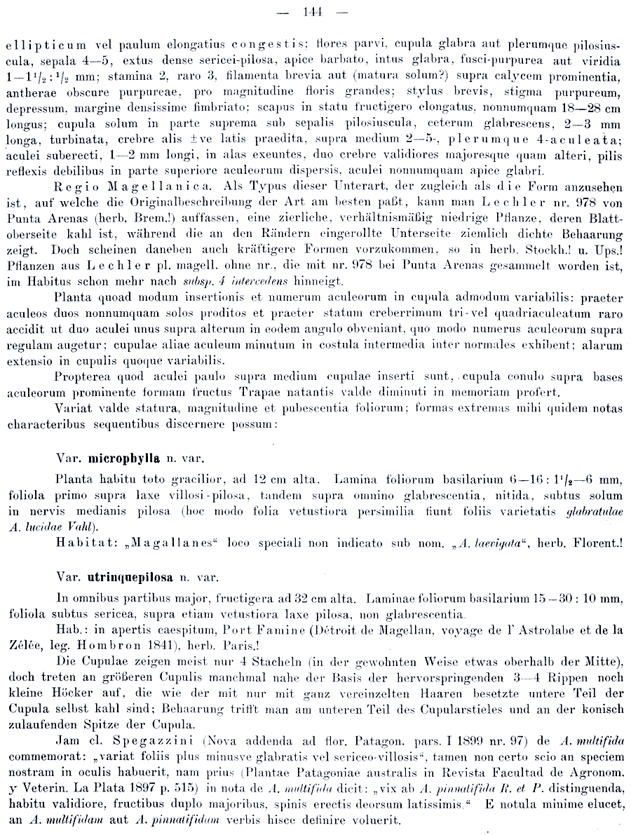 | Andriy Kovalchuk | Протолог Acaena pinnatifida ssp. aculeata var. macrura Bitter (Bibliotheca Botanica 17, Heft 74: 129. 1910) и Acaena pinnatifida ssp. liocarpa Bitter (Bibliotheca Botanica 17, Heft 74: 130. 1910):