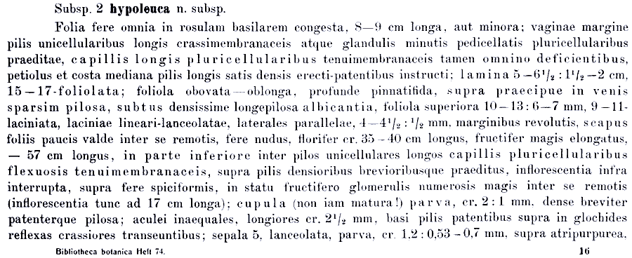 | Andriy Kovalchuk | Протолог Acaena pinnatifida ssp. hypoleuca Bitter (Bibliotheca Botanica 17, Heft 74: 121. 1910), Acaena pinnatifida ssp. hypoleuca var. parvifrons Bitter и Acaena pinnatifida ssp. nudiscapa Bitter (Bibliotheca Botanica 17, Heft 74: 122. 1910):