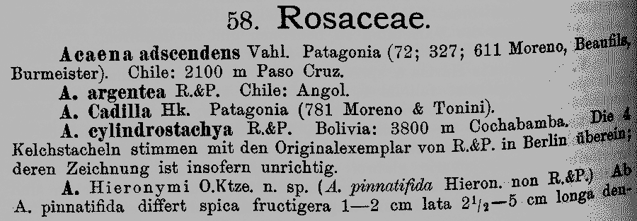 Протолог Acaena hieronymi Kuntze (Revisio Generum Plantarum 3(3): 74. 1898 [28 Sept 1898]):