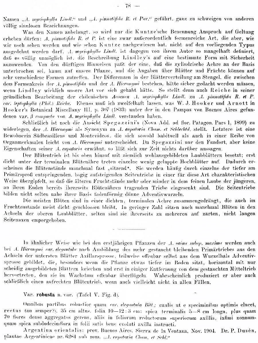 | Andriy Kovalchuk | Протолог Acaena hieronymi var. elegantula Bitter (Bibliotheca Botanica 17, Heft 74: 77. 1910) и Acaena hieronymi var. robusta Bitter (Bibliotheca Botanica 17, Heft 74: 78. 1910):