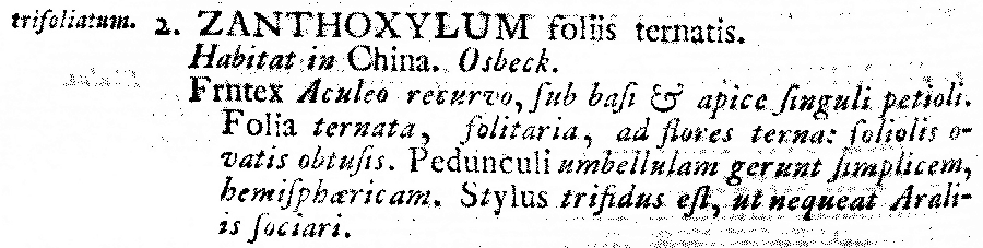 Протолог Zanthoxylum trifoliatum L. (Species Plantarum 1: 270. 1753 [1 May 1753]):
