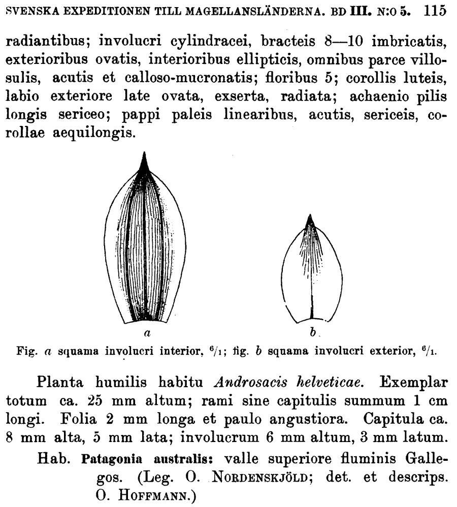 | Andriy Kovalchuk | Протолог Nassauvia modesta O. Hoffm. и Nassauvia bryoides O. Hoffm. (Wissenschaftliche Ergebnisse der Schwedischen Expedition nach den Magellansländern 3, pt. 5: 114. 1900):