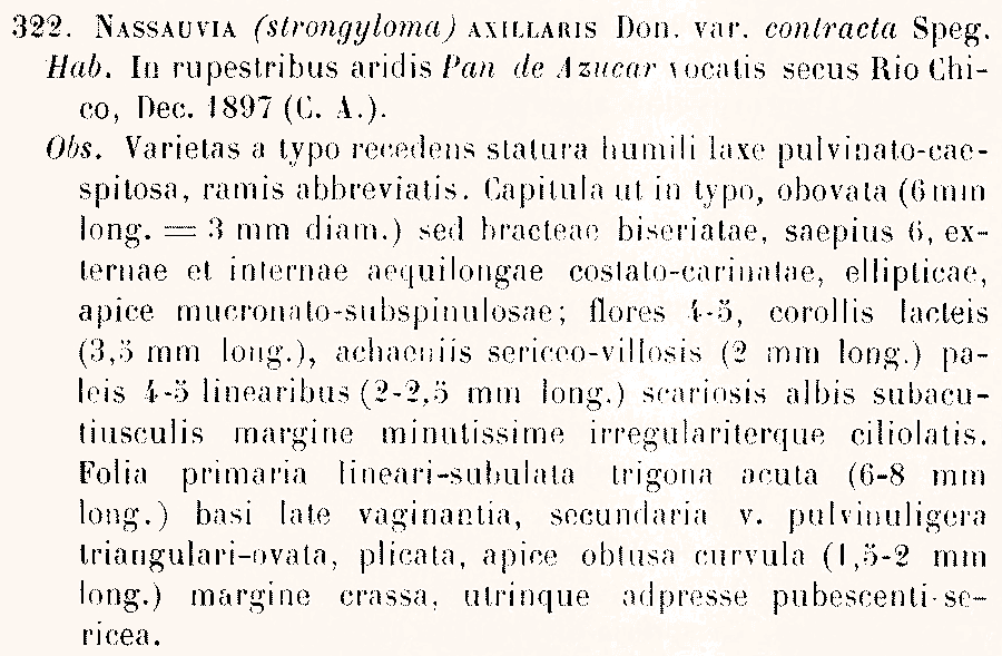 | Andriy Kovalchuk | Протолог Nassauvia axillaris var. contracta Speg. (Anales de la Sociedad Científica Argentina 53: 67. 1902):