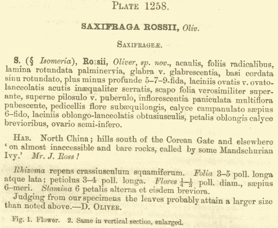 Протолог Saxifraga rossii Oliv. (Hooker's Icones Plantarum 13: t. 1258. 1878 [Jun 1878]):