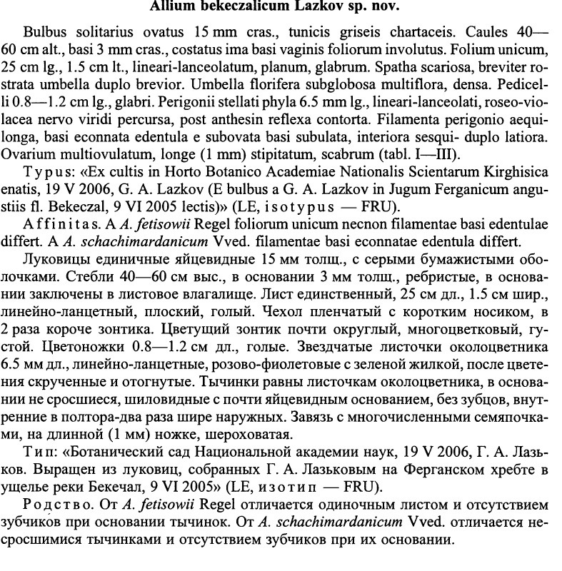 | Vladimir Epiktetov | Протолог Allium bekeczalicum БЖ 93(8) 1272 (2008)