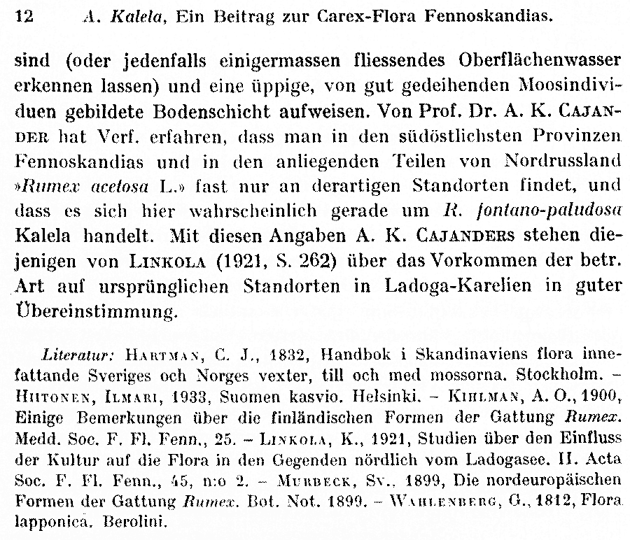 Протолог Rumex fontano-paludosus Kalela (Annales Botanici Societatis Zoologicae-Botanicae Fennicae "Vanamo" 14(2): 10. 1940):
