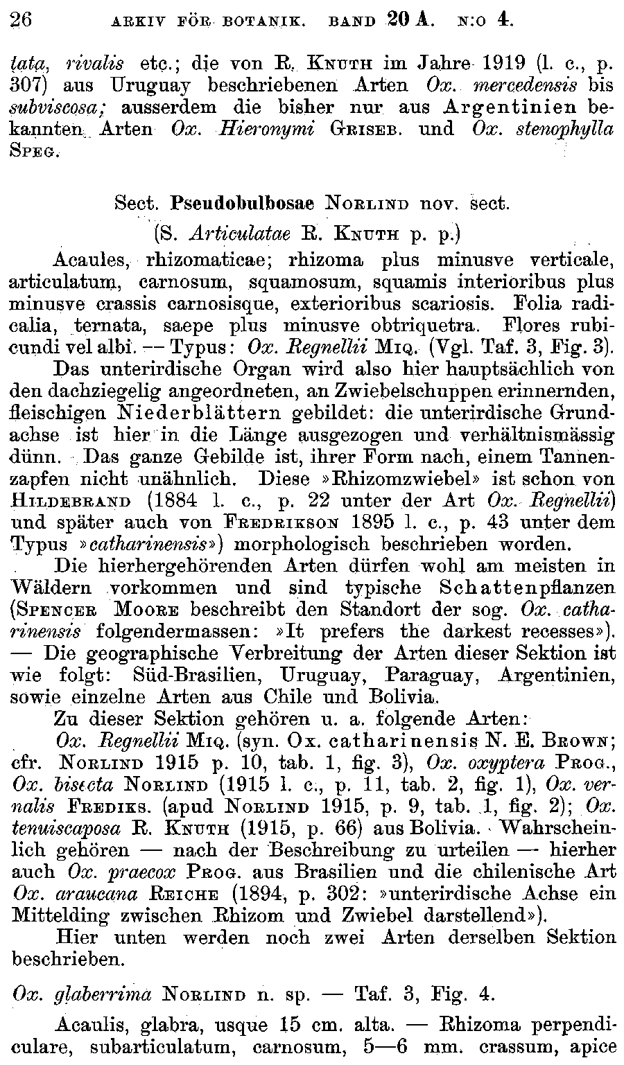 Протолог Oxalis glaberrima Norlind (Arkiv för Botanik 20A(4): 26–27, t. 3, f. 4. 1926):