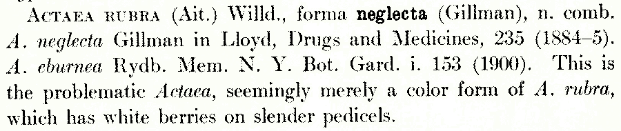 | Andriy Kovalchuk | Обнародование комбинации Actaea rubra f. neglecta (Gillmann) B.L. Rob. (Rhodora 10(112): 66. 1908):