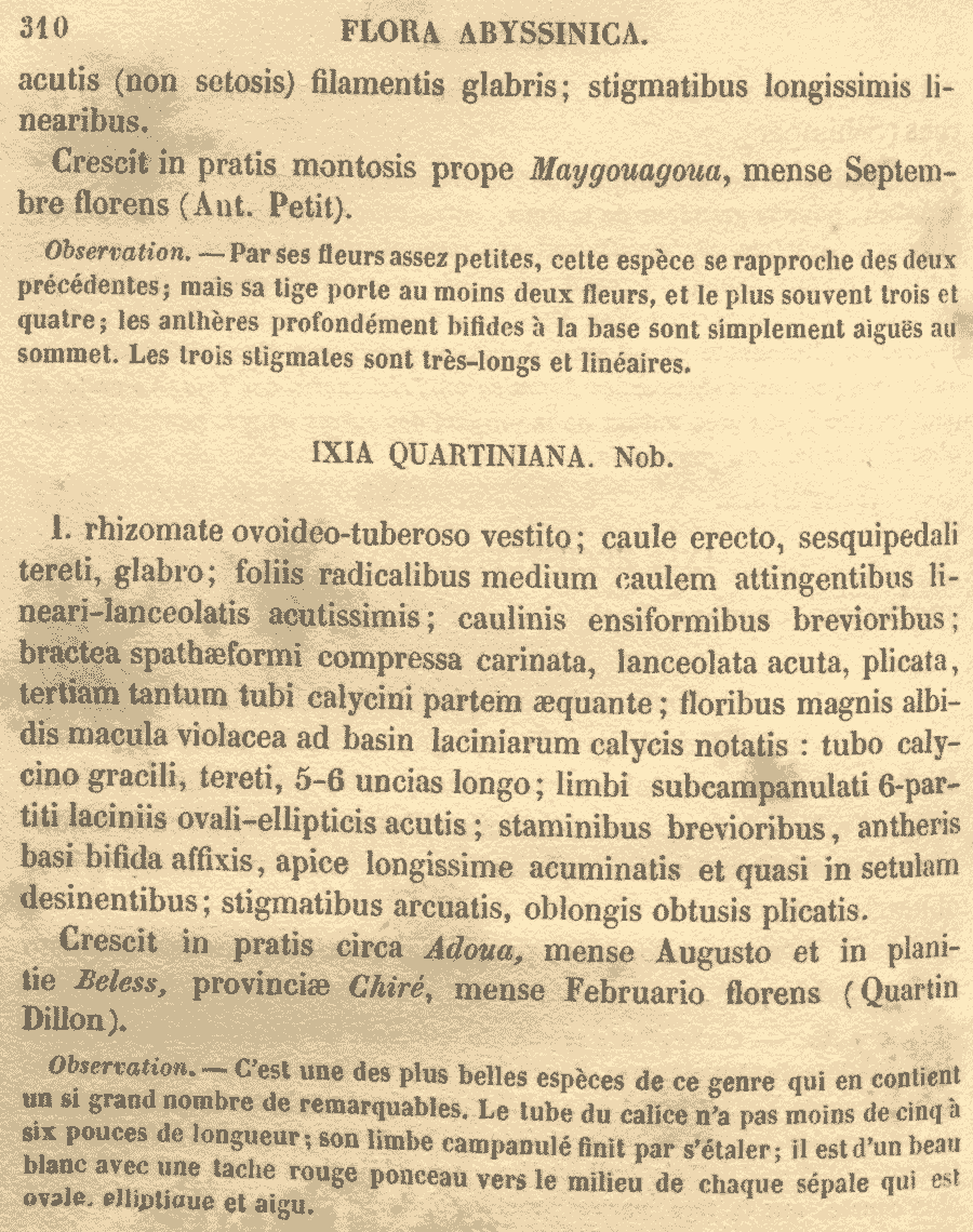 Протолог Ixia quartiniana A. Rich. (Tentamen Florae Abyssinicae 2: 310. 1850):