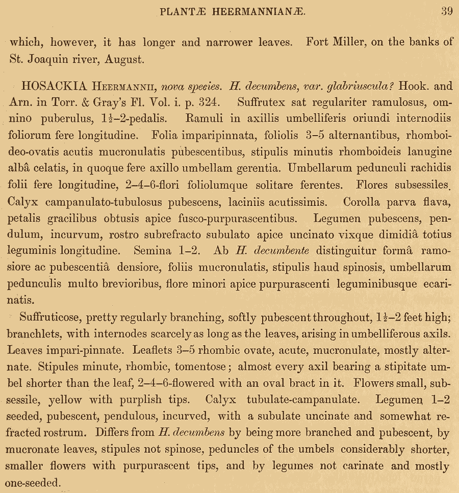 Протолог Hosackia heermannii Durand & Hilg. (Plantae Heermanniae 39. 1854 [Nov 1854]):