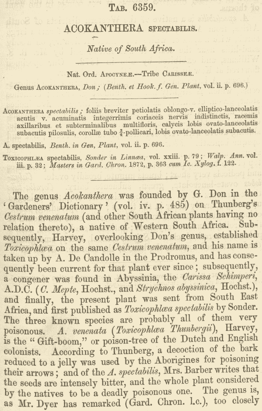 | Andriy Kovalchuk | Обнародование комбинации Acokanthera spectabilis (Sond.) Hook. f. (Botanical Magazine 104: t. 6359. 1878):