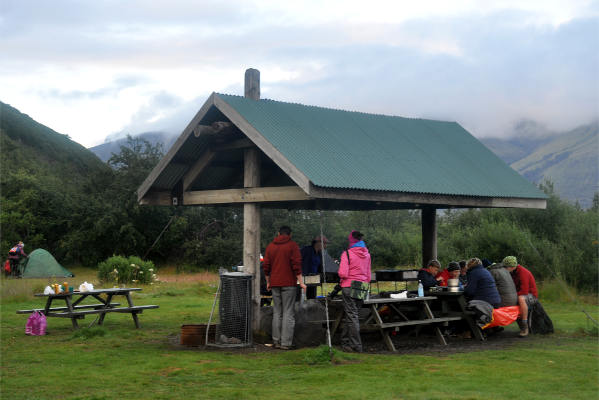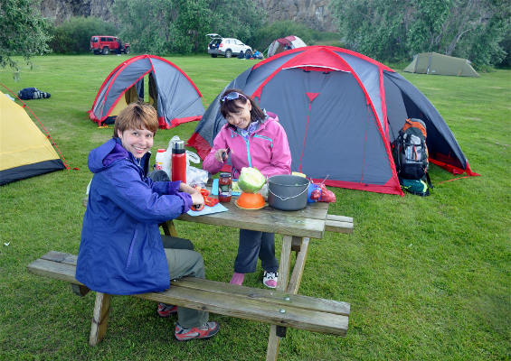 Ночевали мы пару раз в хостелах, но все остальное время в палатках. Надо сказать, что я привыкла путешествовать у нас, поэтому уровень комфорта в прекрасных исландских кемпингах вызвал у меня культурный шок. В первом же кемпинге (самом примитивном, как потом оказалось!) мы заметили торчащие из земли загадочные столбики, на которых при ближайшем рассмотрении обнаружились РОЗЕТКИ! После этого электричество не оставляло нас никогда, так что, вопреки обыкновению, у всех всегда все было заряжено, а чай готовили в электрическом чайнике! Big smile image А в по-настоящему хороших кемпингах были оборудованные кухни или мангалы, а также душ с горячей водой! Ну что тут скажешь, все-таки Европа, цивилизация, это только я дикая удивлялась, а иностранные туристы жаловались, что в некоторых кемпингах нет фена (как же теперь жить?!) Lol image