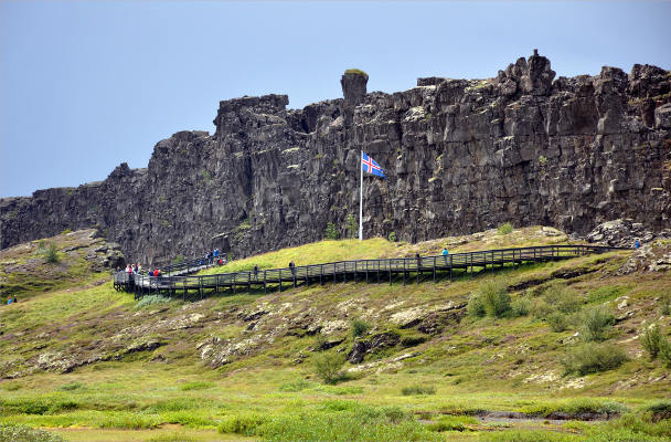 Сначала мы отправились по «Золотому кольцу Исландии», первая остановка в котором – национальный парк Тингведлир, расположенный на берегу живописного озера Тингвадлаватн. Это историческое место, т.к. с 10 по 18 век здесь собирался альтинг – исландский парламент. В парке можно увидеть северный берег озера Тингвадлаватн, великолепные поросшие мхами вулканические скалы, а также толпы туристов. В принципе, ничего удивительного, конечно, ведь приехала я в пик сезона (в начале августа), к тому же Тингведлир находится не слишком далеко от Рейкьявика, так что народу там очень много. На самом деле, не только там, но и практически во всех других местах тоже... Честно говоря, сначала меня это немного напрягало, но ничего, через пару дней привыкла.