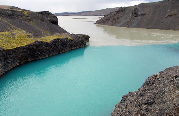 На обратном пути из-за туч выглянул вулкан Гекла: А также мы видели вот такую необычную реку: