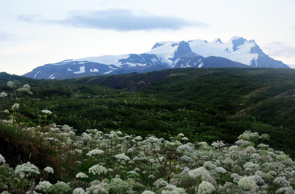 Следующий день был днем ледников. С утра пораньше наших ребят снабдили ледорубами, кошками и не знаю, чем еще, и они все отправились на прогулку по леднику, а у меня появилась возможность отправиться на ботаническую прогулку. Big smile image Ее результаты выложены в моей географической точке под названием «Ватнайокюдль (юг)». Я шла в сторону ледника Скафтафельсйокюдль и наслаждалась великолепными пейзажами, прекрасными растениями и солнечной погодой, а вокруг собирали ягоды какие-то неизвестные мне милые птички. Smile image