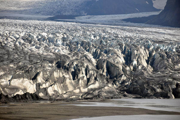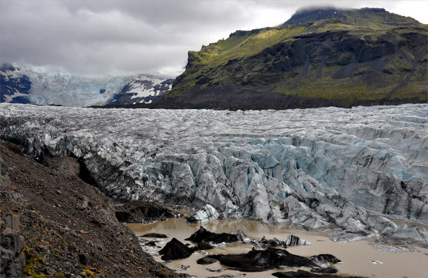 До этого я видела язык ледника вблизи только один раз, это был ледник Бриксдайл в Норвегии, но исландские ледники оказались гораздо более впечатляющими. Это ледник Скафтафельсйокюдль: А это край расположенного неподалеку ледника Свинафельсйокюдль:
