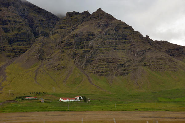| Марина Скотникова | Переполненные впечатлениями и даже слегка пришибленные великолепием ледниковой лагуны, мы поехали дальше. Переезд был довольно длинным, т.к. ночевать нам предстояло в городе Эгилсстадир на побережье одного из восточных фьордов. В этой стороне гораздо меньше туристов, да и жителей тоже не так много. Стоит, например, под склоном одна ферма, рядом поле, а вокруг только горы и побережье, никакого другого жилья – красота…
