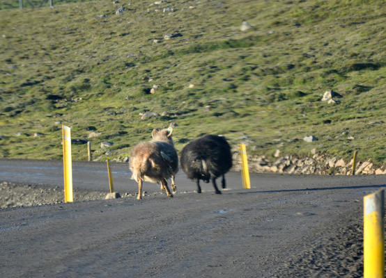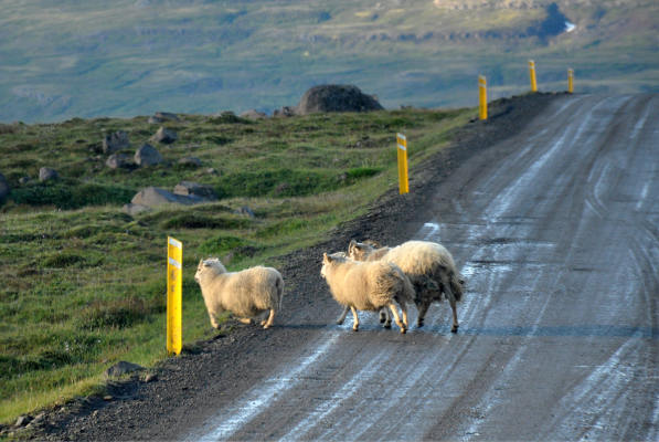 | Марина Скотникова | Еще в этой малонаселенной местности не всегда в порядке ограждения на полях, поэтому на проезжую часть могут внезапно выскочить овцы, так что надо ехать осторожно, чтобы не дай бог их не сбить. Говорят, у каждой вшит чип, и пастух 21 века наблюдает за своими стадами по GPS, поэтому, в случае чего, от правосудия не уйти.  А еще чудесные исландские овечки предпочитают убегать от машины по дороге, видимо так удобнее!