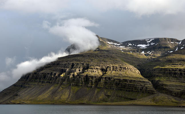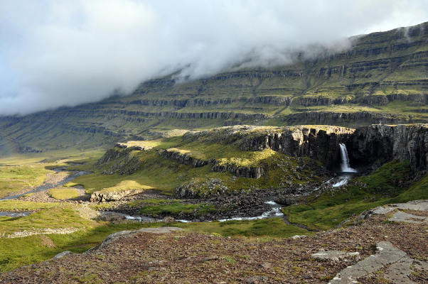 | Марина Скотникова | По пути в Эгилсстадир нужно проехать довольно высокий для тех мест перевал – 950 м, там становится холоднее, зато склоны и водопадики очень живописны. В этих безлюдных местах так хотелось остановиться, поставить палатку и просто пожить пару дней… но нельзя.