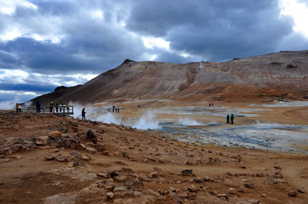 | Марина Скотникова | Чуть дальше находится геотермальное поле Хверир с кипящими грязевыми озерцами и фумаролами (аромат, конечно, соответствующий)