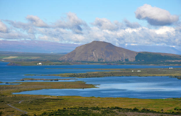 На восточном берегу озера Миватн находится живописный кратер Хверфьял, откуда видны все окрестности: