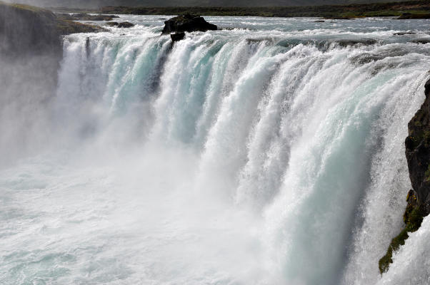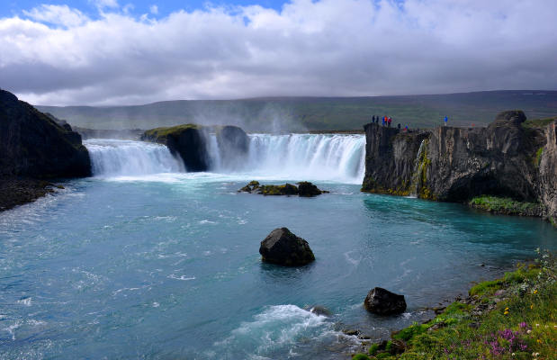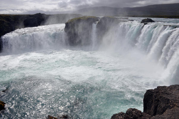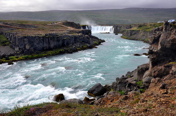 От озера Миватн мы поехали дальше на запад, в сторону Акюрейри – самого крупного города Северной Исландии. По пути мы увидели еще один потрясающе красивый водопад – Годафосс. Это самый часто посещаемый водопад Северной Исландии, т.к. помимо красоты и удобного расположения (практически у дороги, так что народу – тьма!), это еще и исторические место: после принятия исландцами христианства в 1000-х годах туда были сброшены языческие идолы.