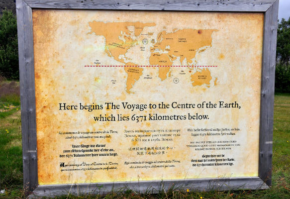 Кстати, это место выбрал Жюль Верн как начало своего «Путешествия к центру Земли», так что там теперь стоит соответствующая табличка и вот этот образчик современного искусства: