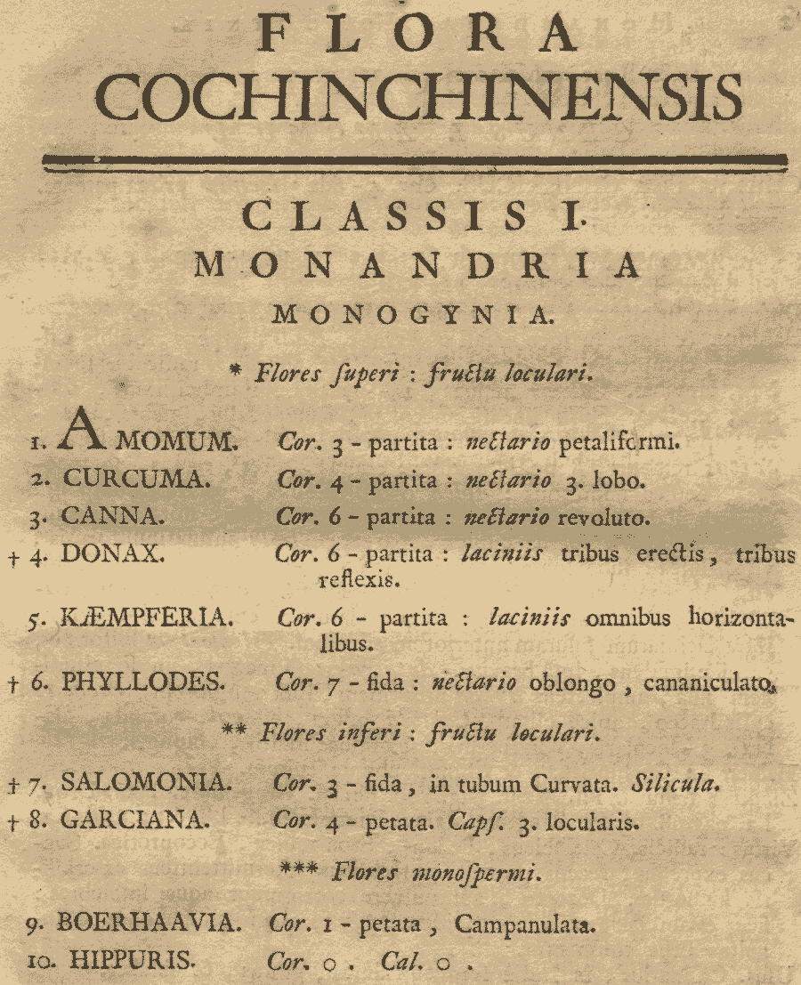 (Flora Cochinchinensis 1: 1, 11. 1790 [Sep 1790]; тип: