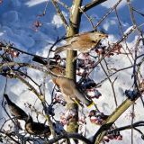 | Aleksei Titov | Спасибо! Большая стая дроздов-рябинников (120-130 особей) с одним (!) прибившимся свиристелем в последнее морозное время регулярно делает набеги на эту рябину. |