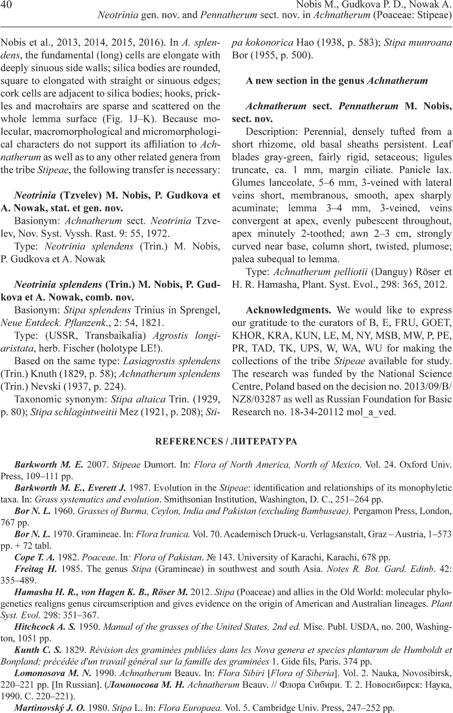| Andriy Kovalchuk | Протолог секции Achnatherum sect. Neotrinia Tzvelev (Новости систематики высших растений 9: 55. 1972; тип: Achnatherum splendens (Trin.) Nevski (≡ Stipa splendens Trin. ≡ Neotrinia splendens (Trin.) M. Nobis, P. Gudkova et A. Nowak):