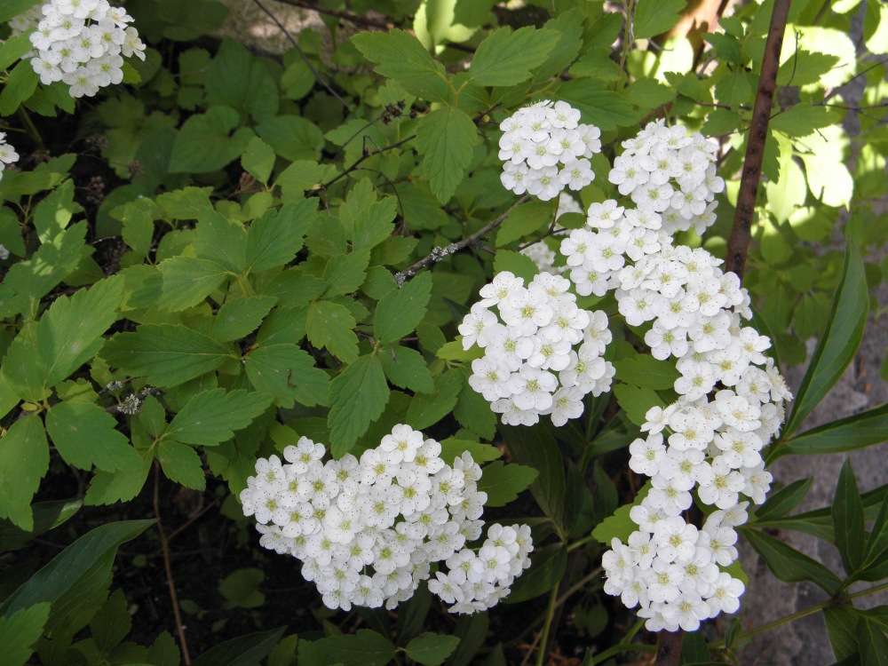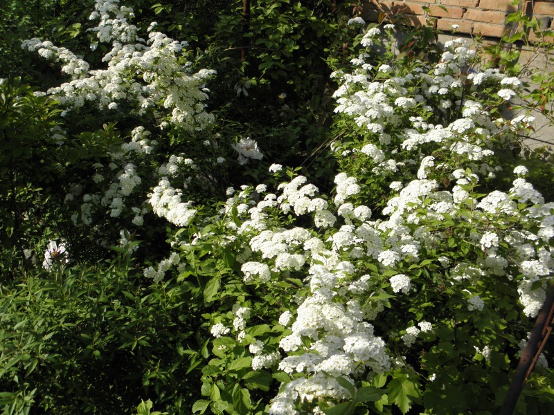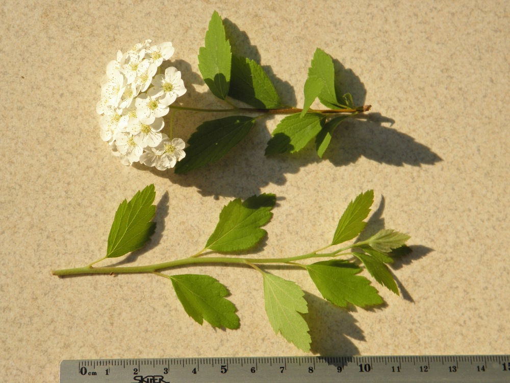 Помогите определить вид таволги. Растение приобретено в питомнике около Кактусовой оранжереи Никитского ботанического сада как таволга березолистная, куст высотой 1,5 м, побеги восходящие, цветет одновременно с таволгой Вангутта, соцветия подобные, листья трехлопастные, салатовые.