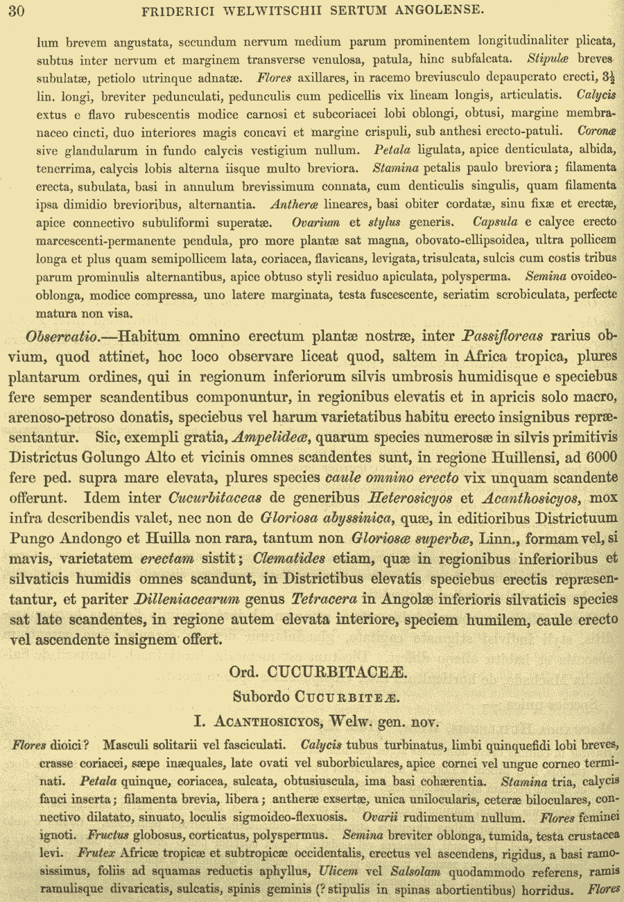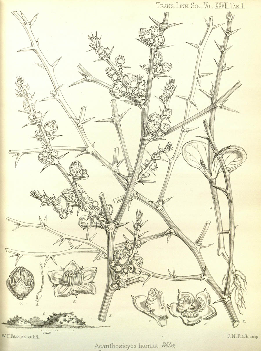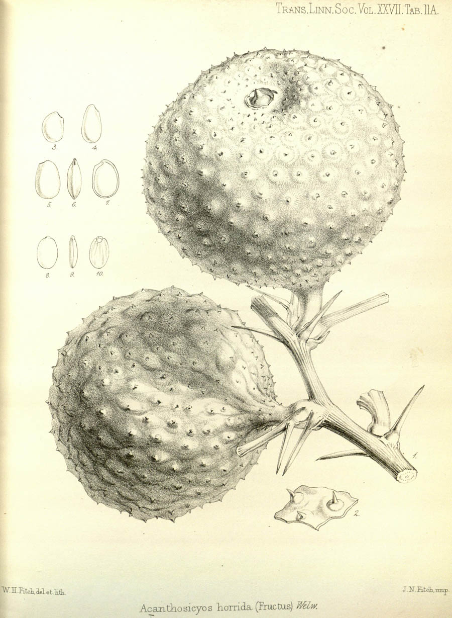 Протолог Acanthosicyos horridus Welw. ex Benth. & Hook.f. (Genera Plantarum [Bentham & Hooker f.] 1(3): 824. 1867 [Sep 1867]; тип: Acanthosicyos horridus Welw. ex Benth. & Hook.f.):